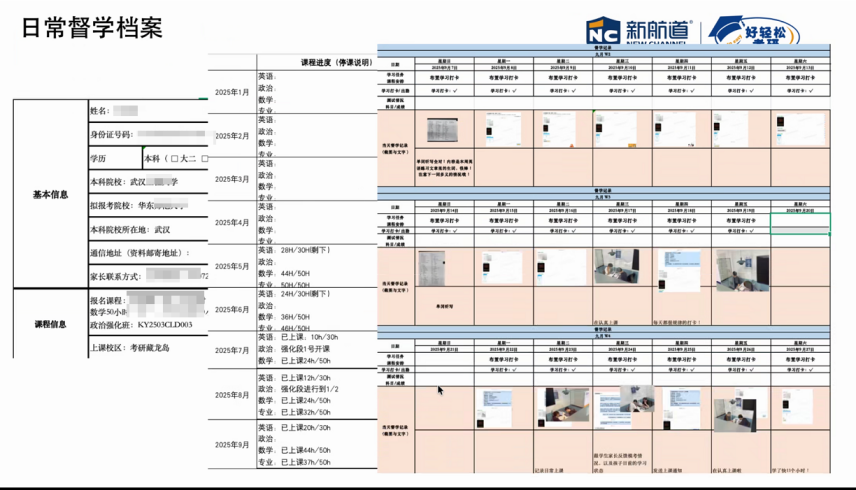 每周出学习小结;每月出【个人成长报告】(分数曲线+弱项清单+下月行动表)。错题电子化回收,48小时内完成批改与针对性练习包。