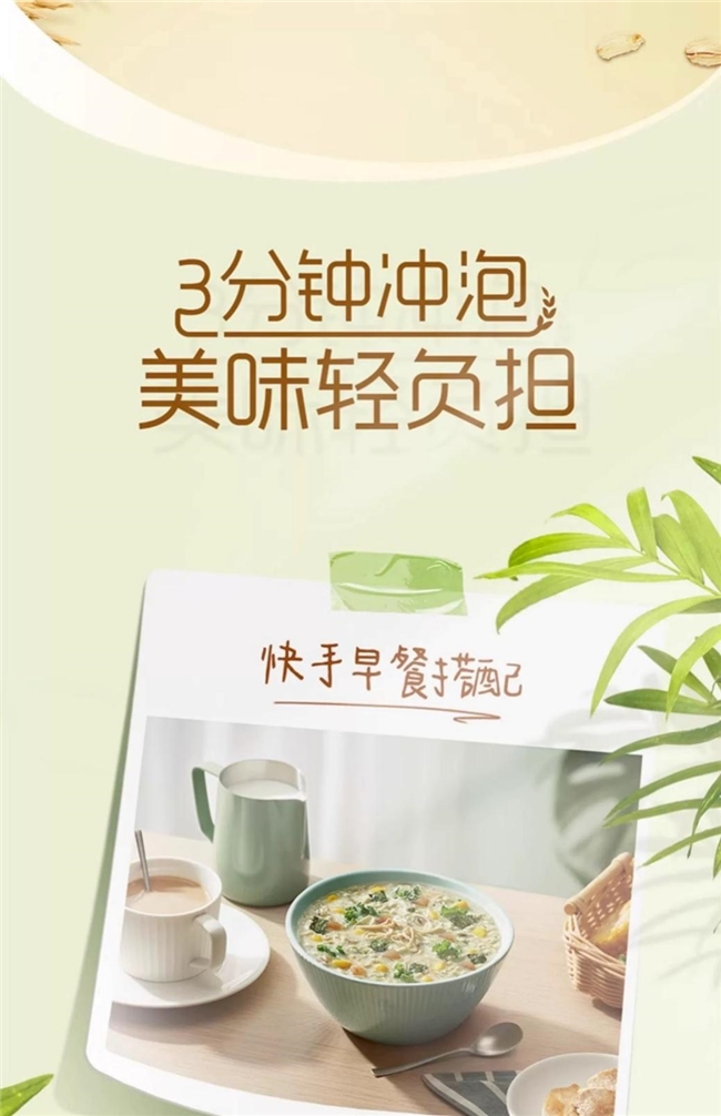 3分钟快手冲泡,比起传统煮粥费时费力,桂格轻畅无米粥随时随地还你一碗香气满满的轻畅好粥。