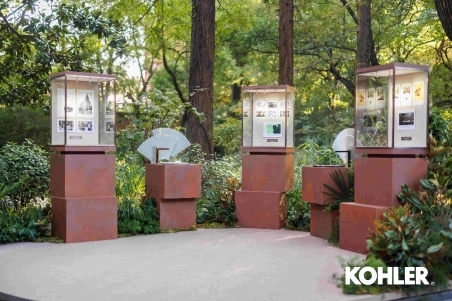 从左至右:科勒品牌展陈-邂逅东方 敢创启航,缪斯艺境 恒久不息,创新色彩 引领风潮