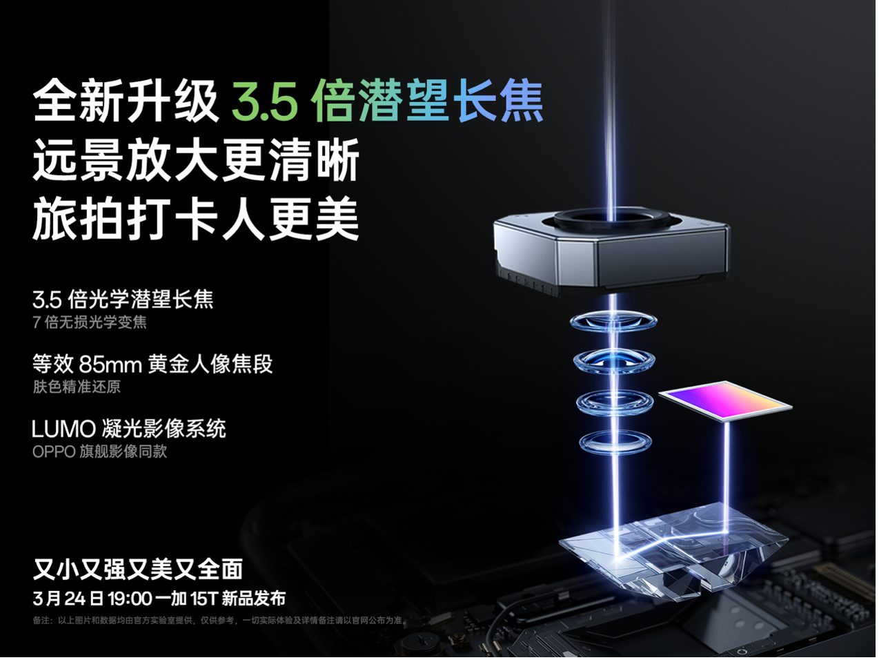 一加 15T 搭载 LUMO 凝光影像系统,5000 万像素潜望长焦轻松定格绝美瞬间